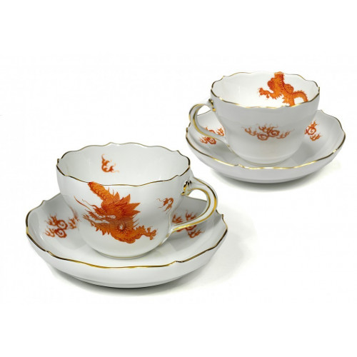 Kaffeetasse m.U., Ming-Drache Style, rot, Goldrand, V 0,25 l