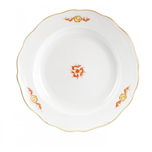 Teller, Form "Neuer Ausschnitt", Ming-Drache Elemente, Flammen, gelb, Goldrand, ø 16 cm