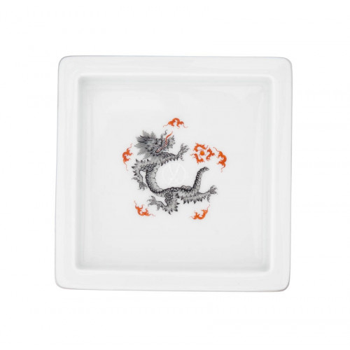 Schälchen, Mingdrachen ohne Kante, schwarz, Faden, schwarz und platin, 9 x 9 cm