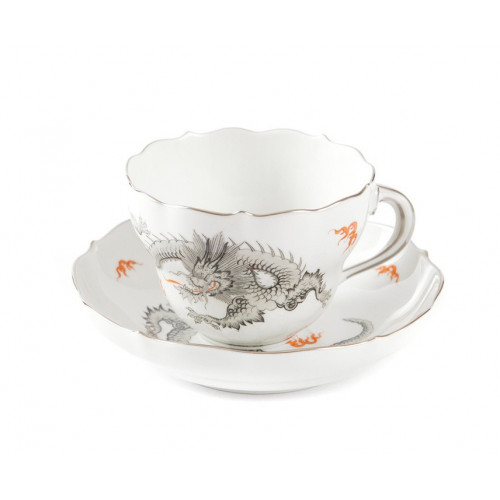 Kaffeetasse m.U., Ming-Drache, ohne Kante, schwarz, Platinrand, V 0,25 l