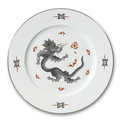 Teller, Ming-Drache, ohne Kante, schwarz, Platinrand, Ø 29 cm