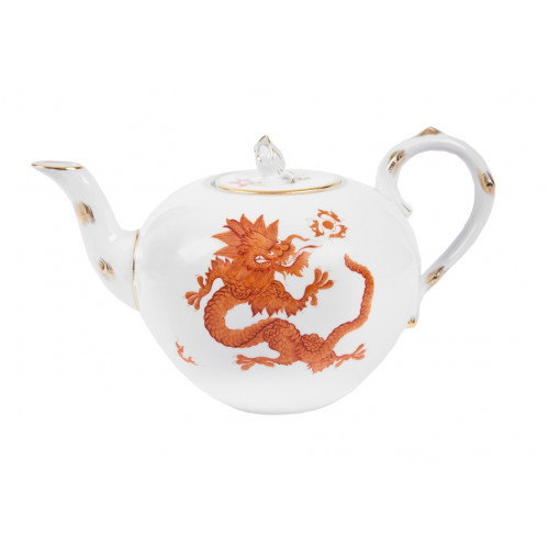 Teekanne, Form "Neuer Ausschnitt", Ming-Drache, Dekorelemente, leicht, rot, Goldrand, V 1,00 l