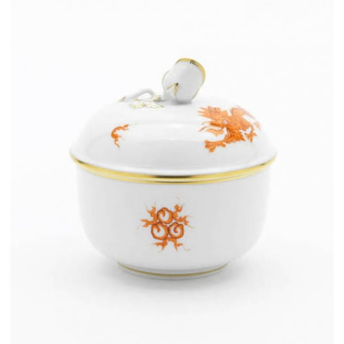 Zuckerdose, Ming-Drache, Dekorelemente, leicht, rot, Goldrand, Ø 9 cm