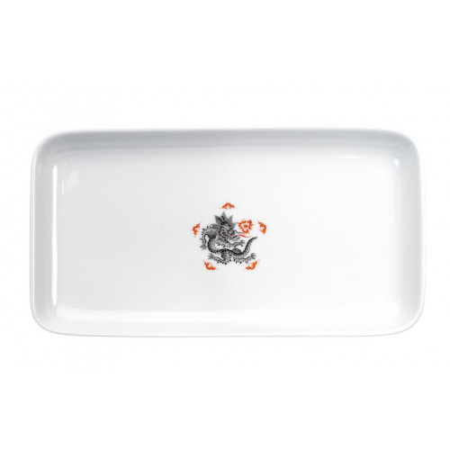 Platte,rechteck., Ming-Drache, Medaillon, ohne Kante, schwarz, L 23 cm