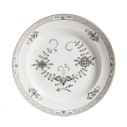 Teller, Indische Malerei 2, mit Kante, schwarz, Goldpunkte, Goldrand, ø 20 cm