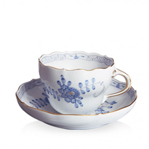 Espressotasse, Indische Malerei 2 mit Kante, hellblau, Goldpunkte, Goldrand, V 0,1 l