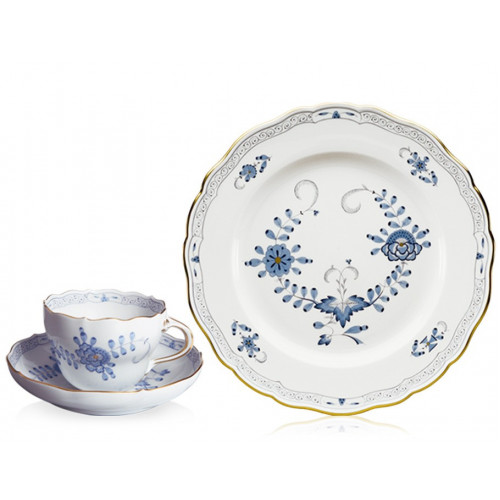 Teetasse m.U., Indische Malerei 2 mit Kante, hellblau, Goldpunkte, Goldrand, V 0,20 l