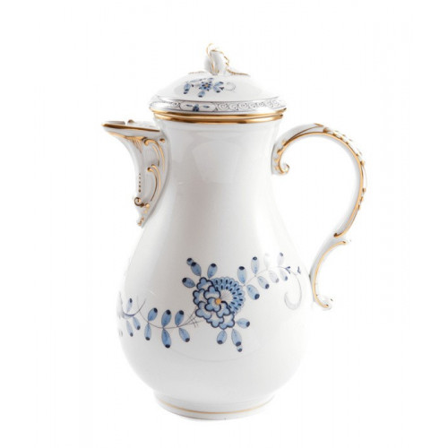 Kaffeekanne, Indische Malerei 2 mit Kante, hellblau, Goldpunkte, Goldrand, V 1,20 l