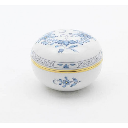 Dose, Indische Malerei 2 mit Kante, hellblau, Goldpunkte, Goldrand, ø 9 cm