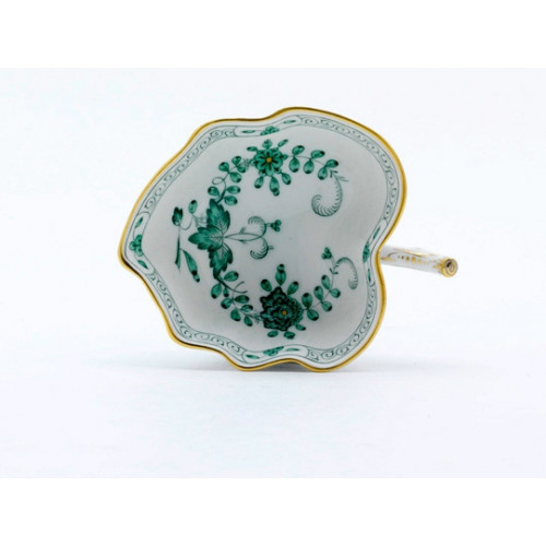 Salzgefäß, Form "Neuer Ausschnitt", Indische Malerei 2 mit Kante, grün, Goldpunkte, Goldrand, L 8 cm