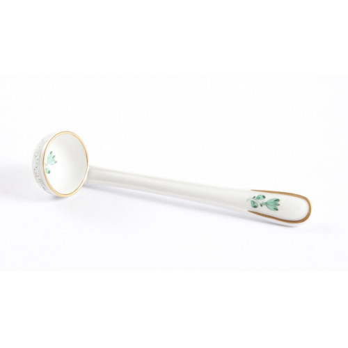 Senflöffel, Indische Malerei 2 mit Kante, grün, Goldpunkte, Goldrand, L 10 cm