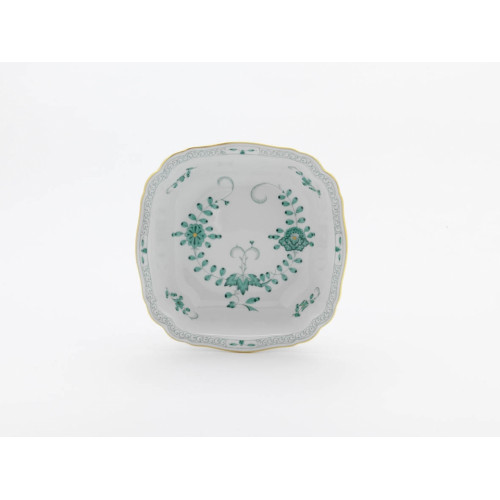 Schüssel, eckig, Indische Malerei 2 mit Kante, grün, Goldpunkte, Goldrand, L 18,5 cm