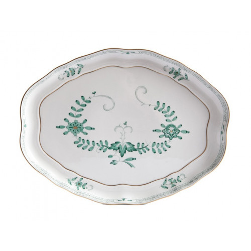 Platte, oval, Indische Malerei 2 mit Kante, grün, Goldpunkte, Goldrand, 34 cm