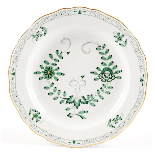 Teller, Form "Neuer Ausschnitt", Indische Malerei 2 mit Kante, grün, Goldpunkte, Goldrand, ø 22 cm