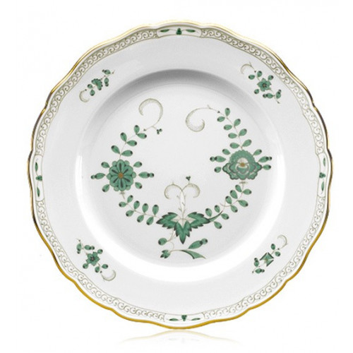 Speiseteller, Indische Malerei 2 mit Kante, grün, Goldpunkte, Goldrand, ø 28 cm