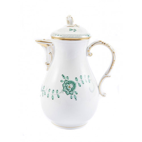 Kaffeekanne, Form "Neuer Ausschnitt", Indische Malerei 2 mit Kante, grün, Goldpunkte, Goldrand, V 1,20 l