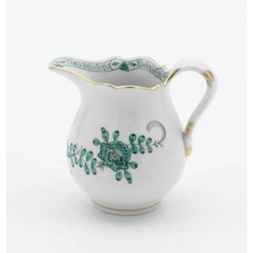 Milchkännchen, Form "Neuer Ausschnitt", Indische Malerei 2 mit Kante, grün, Goldpunkte, Goldrand, V 0,12 l