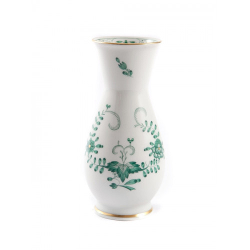 Vase, Indische Malerei 2 mit Kante, grün, Goldpunkte, Goldrand, H 14,5 cm