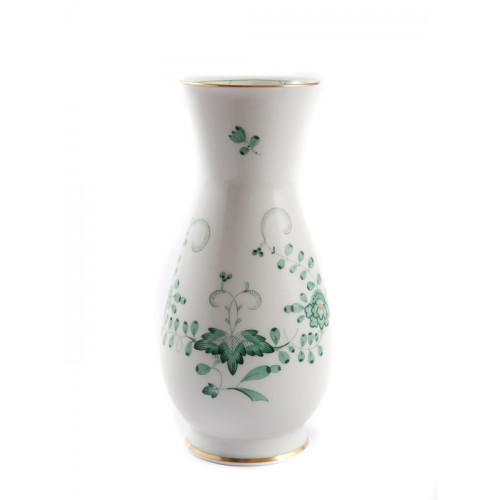 Vase, Indische Malerei 2 mit Kante, grün, Goldpunkte, Goldrand, H 16,5 cm