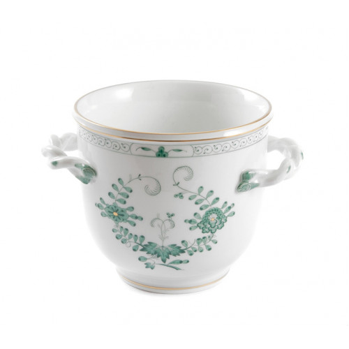 Blumentopf, Indische Malerei 2 mit Kante, grün, Goldpunkte, Goldrand, H 11 cm
