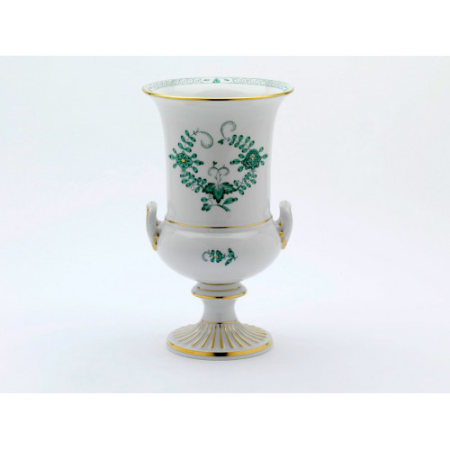Vase, Indische Malerei 2 mit Kante, grün, Goldpunkte, Goldrand, H 23 cm