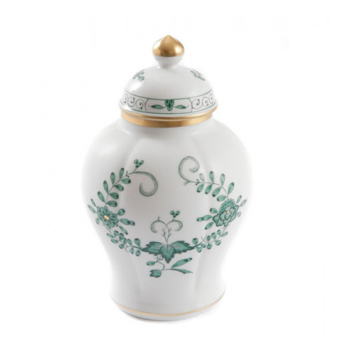 Vase, Indische Malerei 2 mit Kante, grün, Goldpunkte, Goldrand, H 14,5 cm