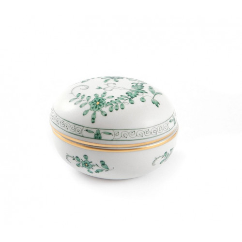 Dose, Indische Malerei 2 mit Kante, grün, Goldpunkte, Goldrand, ø 7,5 cm
