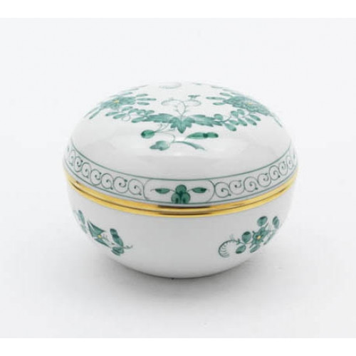 Dose, Indische Malerei 2 mit Kante, grün, Goldpunkte, Goldrand, ø 9 cm