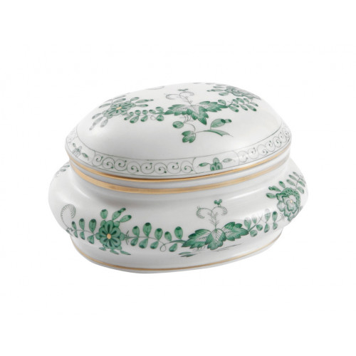 Dose, Indische Malerei 2 mit Kante, grün, Goldpunkte, Goldrand, L 12 cm