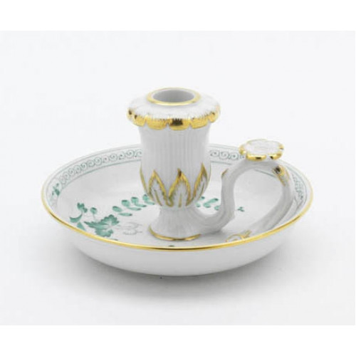 Leuchter, Indische Malerei 2 mit Kante, grün, Goldpunkte, Goldrand, H 7 cm