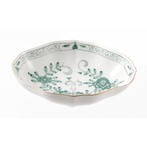 Schälchen, Form "Neuer Ausschnitt", Indische Malerei 2 mit Kante, grün, Goldpunkte, Goldrand, L 8 cm