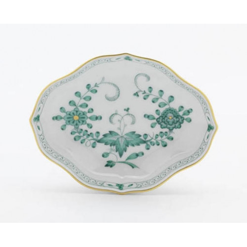 Schälchen, Form "Neuer Ausschnitt", Indische Malerei 2 mit Kante, grün, Goldpunkte, Goldrand, L 12 cm