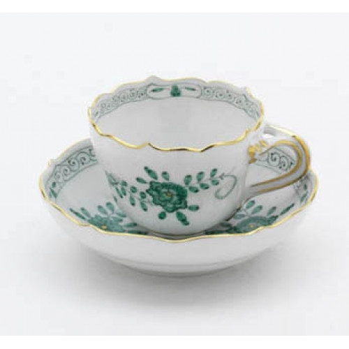 Miniaturtasse Neuer Ausschnitt, Indische Malerei 2 mit Kante, grün, Goldpunkte, Goldrand, 0,04 l