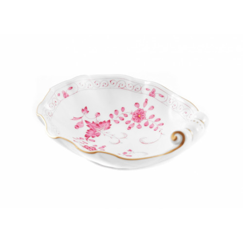 Salzgefäß, Form "Neuer Ausschnitt", Indische Malerei 2, mit Kante, purpur, Goldpunkte, Goldrand, L 11 cm