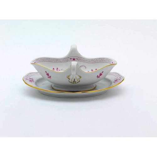 Sauciere, Form "Neuer Ausschnitt", Indische Malerei 2, mit Kante, purpur, Goldpunkte, Goldrand, V 0,25 l