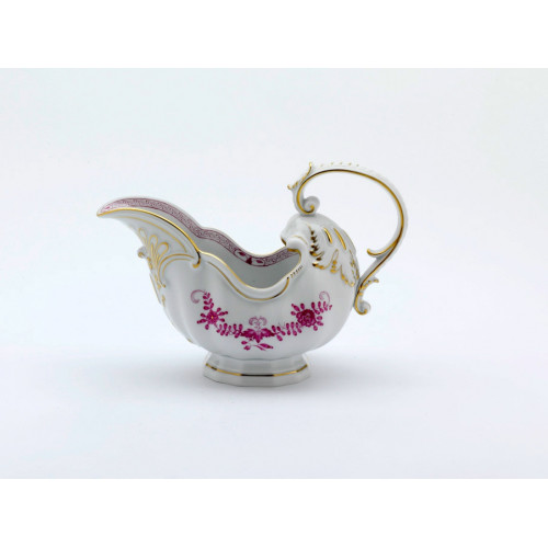 Sauciere, Form "Neuer Ausschnitt", Indische Malerei 2, mit Kante, purpur, Goldpunkte, Goldrand, V 0,40 l