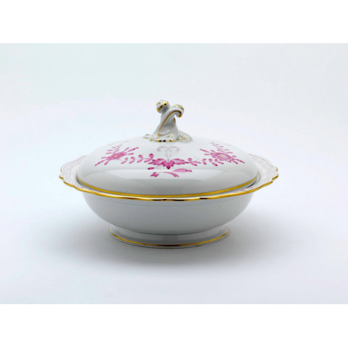Schüssel m.D., Form "Neuer Ausschnitt", Indische Malerei 2, mit Kante, purpur, Goldpunkte, Goldrand, V 1,00 l