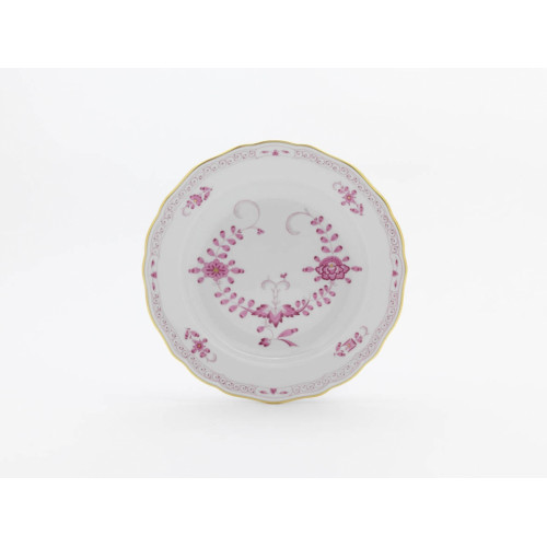 Teller, Form "Neuer Ausschnitt", Indische Malerei 2, mit Kante, purpur, Goldpunkte, Goldrand, ø 20 cm