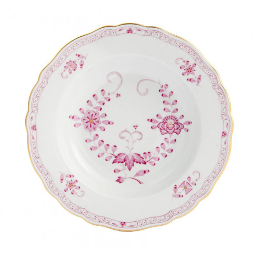 Suppenteller, Form "Neuer Ausschnitt", Indische Malerei 2, mit Kante, purpur, Goldpunkte, Goldrand, ø 22 cm