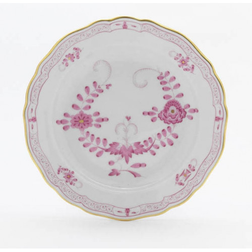 Teller, Form "Neuer Ausschnitt", Indische Malerei 2, mit Kante, purpur, Goldpunkte, Goldrand, ø 18 cm