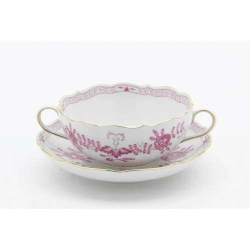 Suppentasse m.U., Form "Neuer Ausschnitt", Indische Malerei 2, mit Kante, purpur, Goldpunkte, Goldrand, V 0,35 l