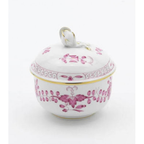 Zuckerdose, Form "Neuer Ausschnitt", Indische Malerei 2, mit Kante, purpur, Goldpunkte, Goldrand, Ø 9 cm