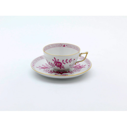 Kaffeetasse m.U., Form "I-Form", Indische Malerei 2, mit Kante, purpur, Goldpunkte, Goldrand, V 0,15 l