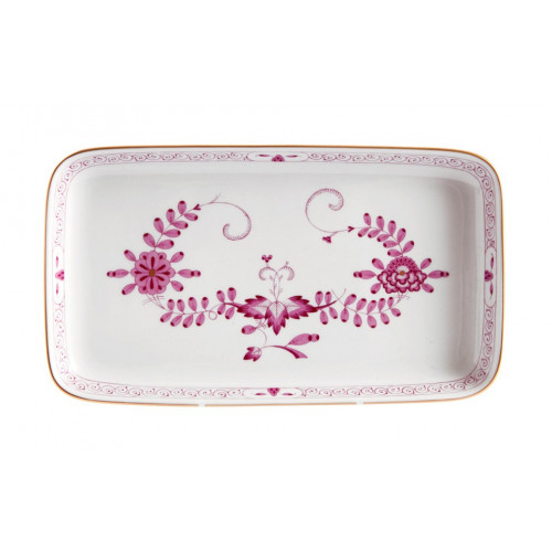 Platte,rechteck., Indische Malerei 2, mit Kante, purpur, Goldpunkte, Goldrand, L 23 cm