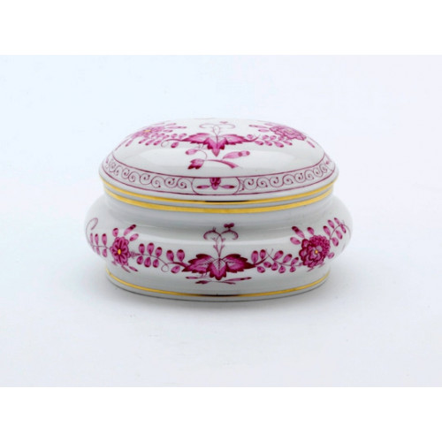Dose, Indische Malerei 2, mit Kante, purpur, Goldpunkte, Goldrand, L 12 cm