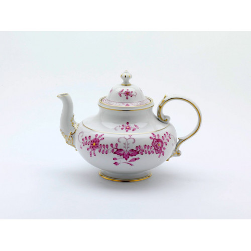Teekanne, Indische Malerei 2, mit Kante, purpur, Goldpunkte, Goldrand, V 1,50 l