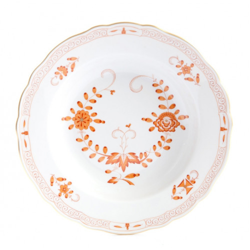 Suppenteller, Form "Neuer Ausschnitt", Indische Malerei 2 mit Kante, rot, Goldpunkte, Goldrand, ø 22 cm