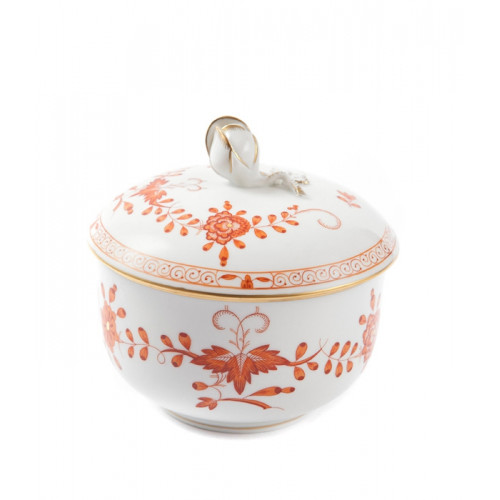 Zuckerdose, Form "Neuer Ausschnitt", Indische Malerei 2 mit Kante, rot, Goldpunkte, Goldrand, ø 10 cm