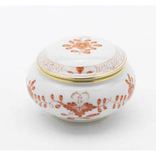 Dose, Form "Neuer Ausschnitt", Indische Malerei 2 mit Kante, rot, Goldpunkte, Goldrand, 8 cm