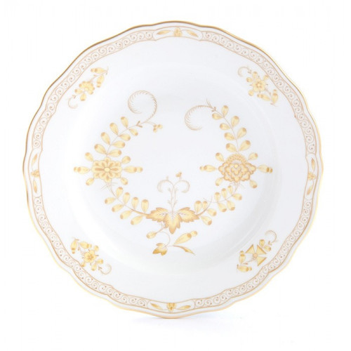 Teller, Indische Malerei 2 mit Kante, gelb, Goldpunkte, Goldrand, ø 20 cm